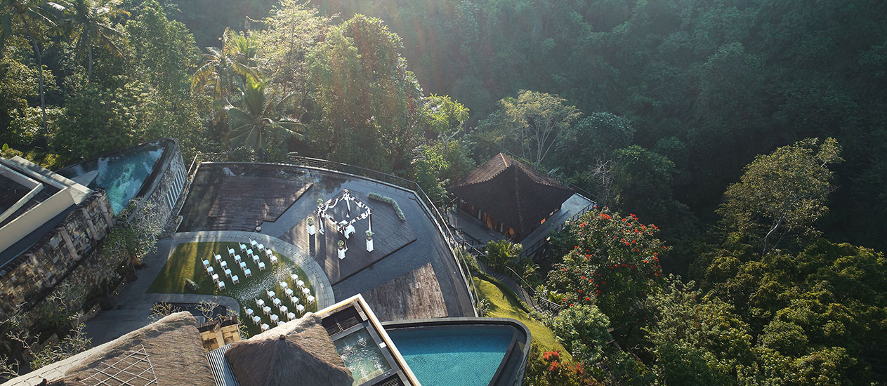 Kamandalu Ubud Villas是一个非常适合举办婚礼的场地。首先,度假村有一个宽敞的草坪区域,可以举办户外婚礼仪式。草坪上有美丽的花园和水景,为婚礼增添了浪漫的氛围。此外,草坪旁边还有一个宽敞的露天餐厅,可以安排宴会和婚礼派对。其次,度假村还提供了一个私人泳池别墅作为婚礼场地,新人可以在私人泳池畔交换婚誓,享受私密的婚礼仪式。这个别墅还配备了室外浴缸和室外休息区,让新人和客人可以尽情享受度假村的豪华设施。总的来说,Kamandalu Ubud Villas的婚礼场地提供了多种选择,无论是户外草坪、私人泳池别墅,都为新人提供了一个浪漫、私密、豪华的婚礼体验。