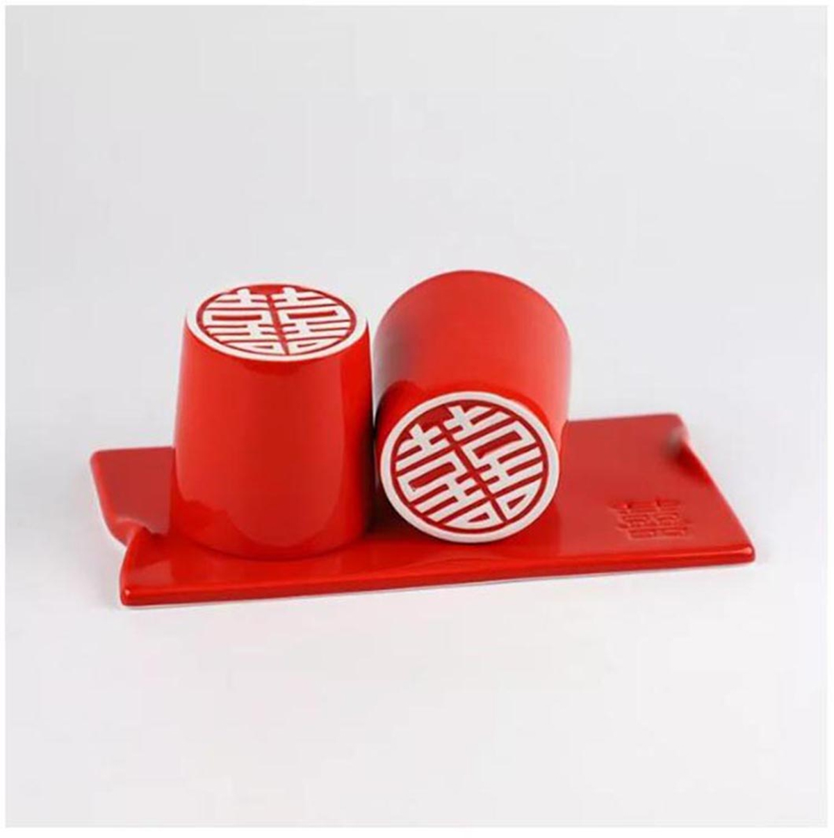要是觉得上面的还不够特别,这套对杯的喜字藏在杯底,印章一样的图案杯底举杯的时候就好像把相守一生的承诺一同印在了心里呀,超级甜的小心机喜字有木有?